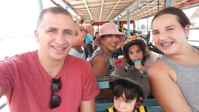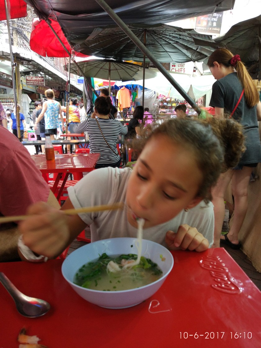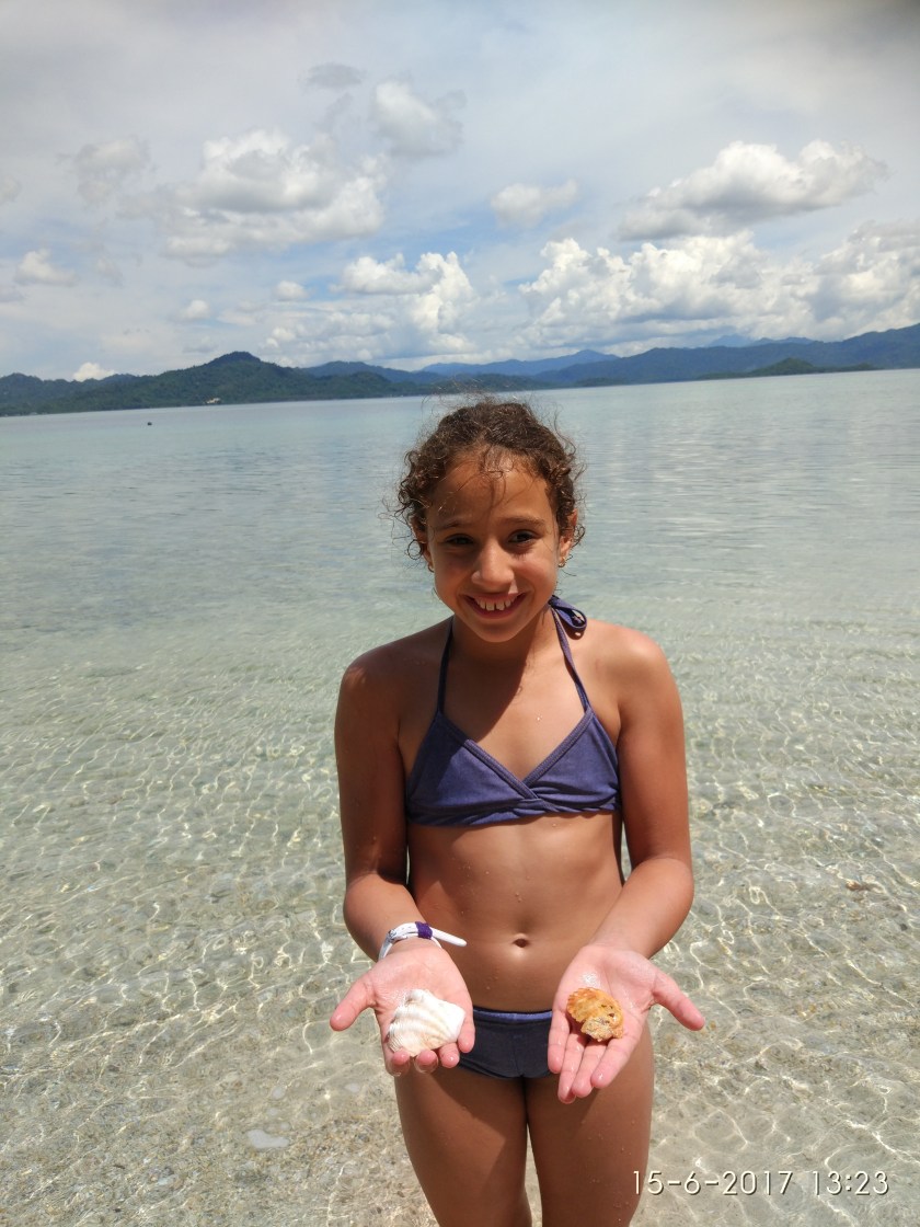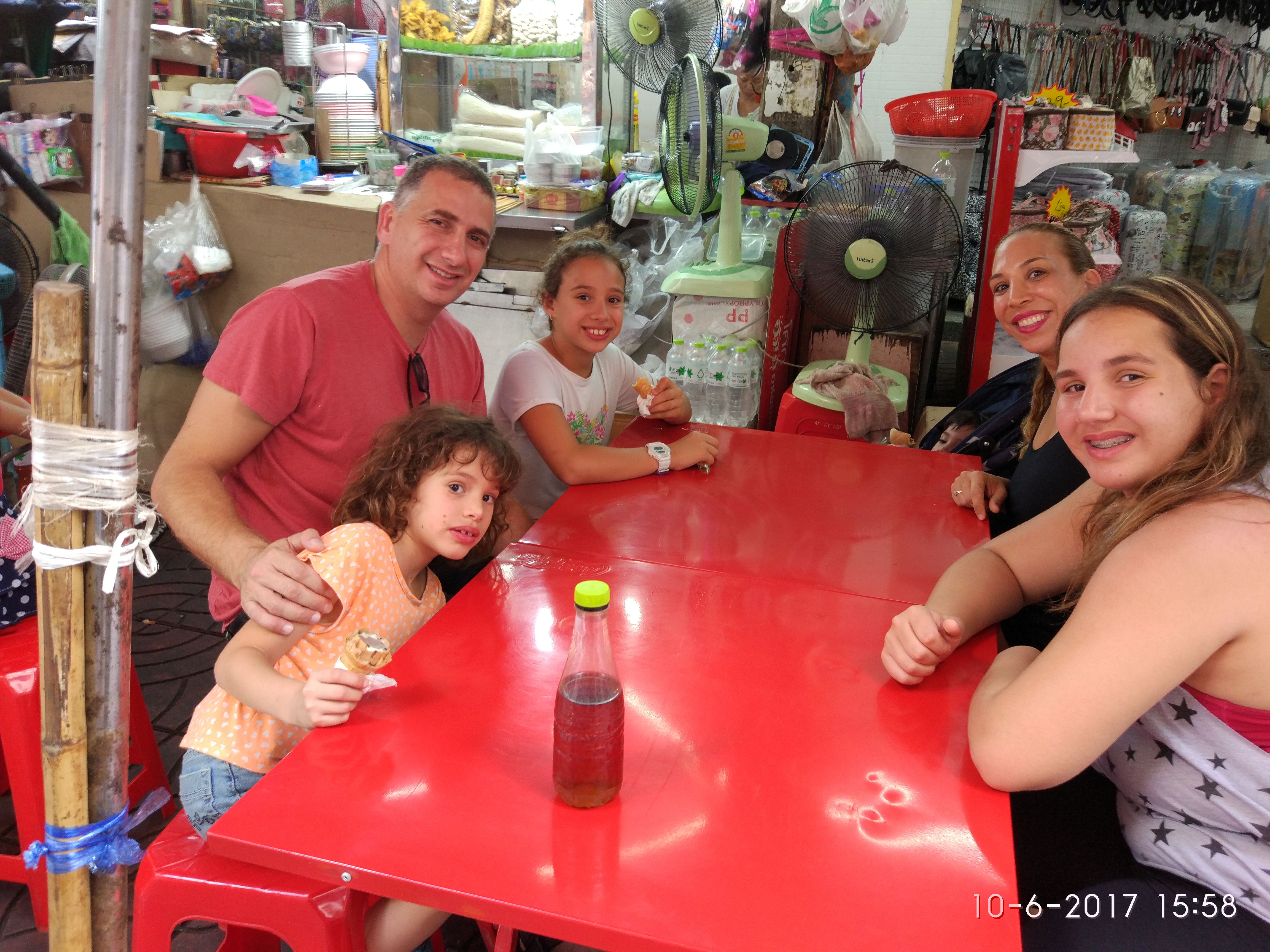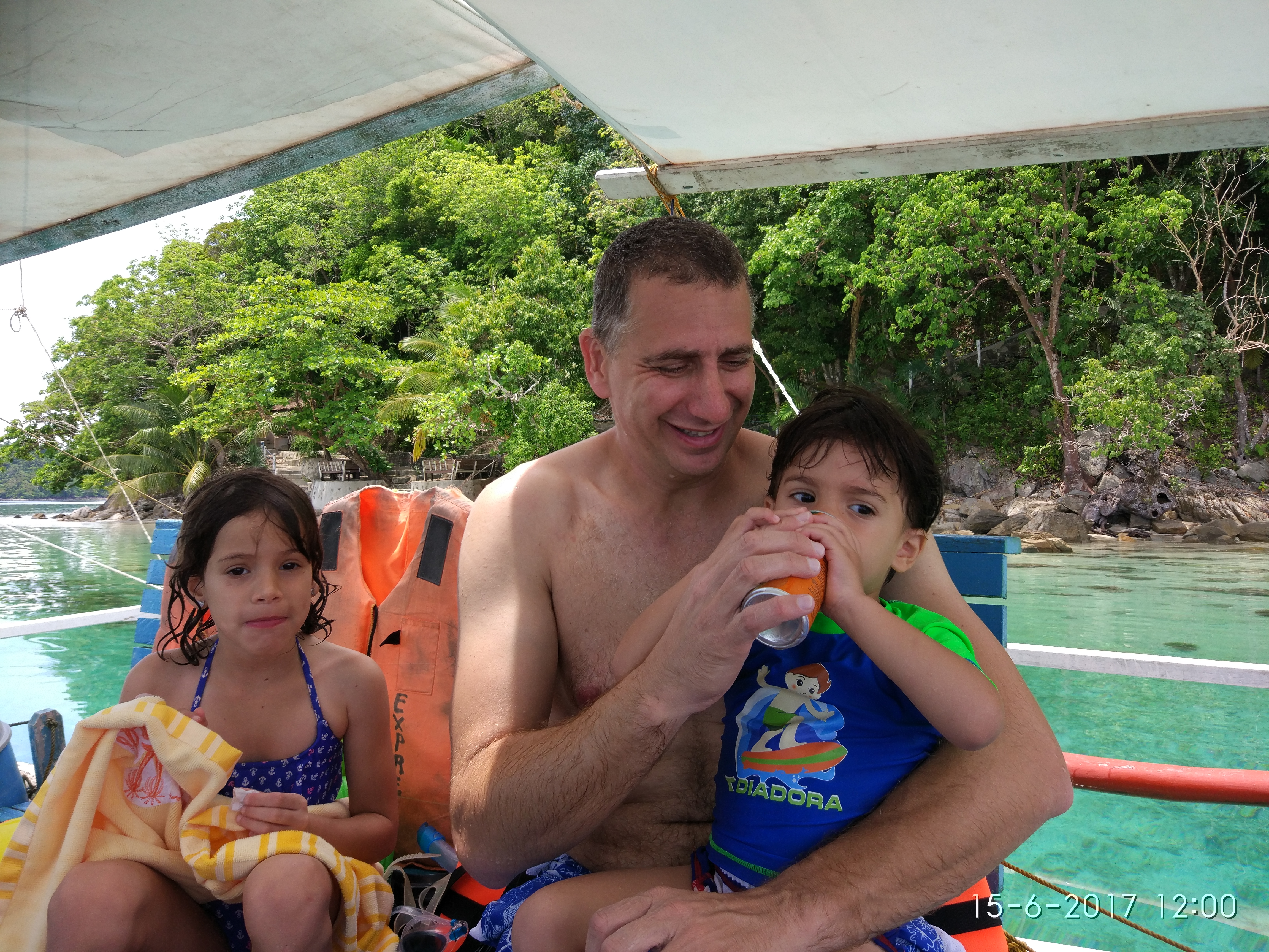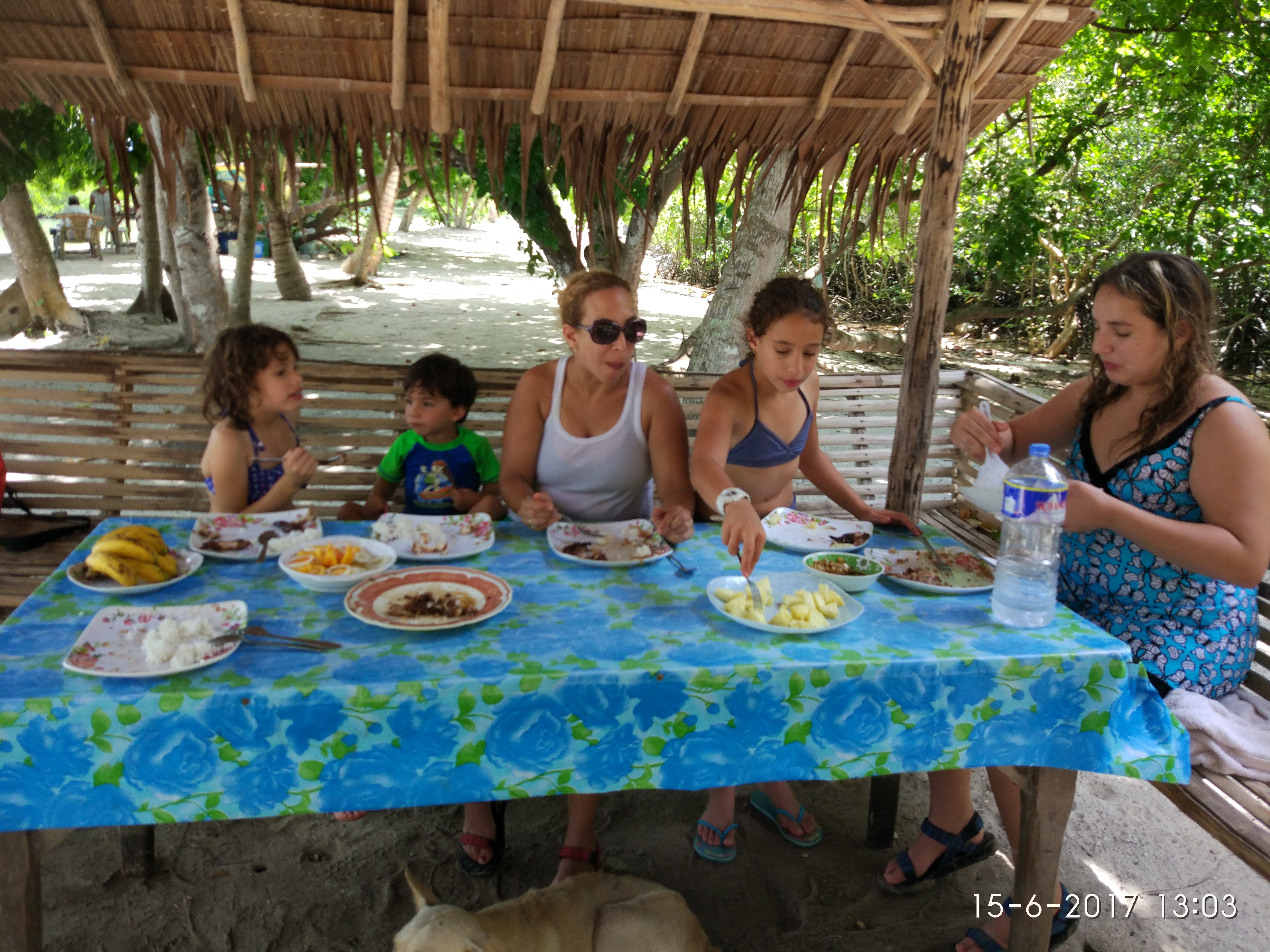 המדריך דונג הכין לנו עוף על הגריל שהיה מצויין, ירקות סטיקי אורז וקינוח בננות ואננס. הייתה בהחלט ארוחה כיפית ודונג בהחלט היה אכפתי ורגיש לכל צרכינו. הבנות החליטו להתנסות בשליחת מי קוקוס והן די אהבו את זה. האי שאכלנו בו צהרים היה מופלא! אי כמו בסיפורים, חול לבן, דגים גם במים הרדודים, ערסלים מנצרים, קונכיות על החוף ועצים מנגרובים..