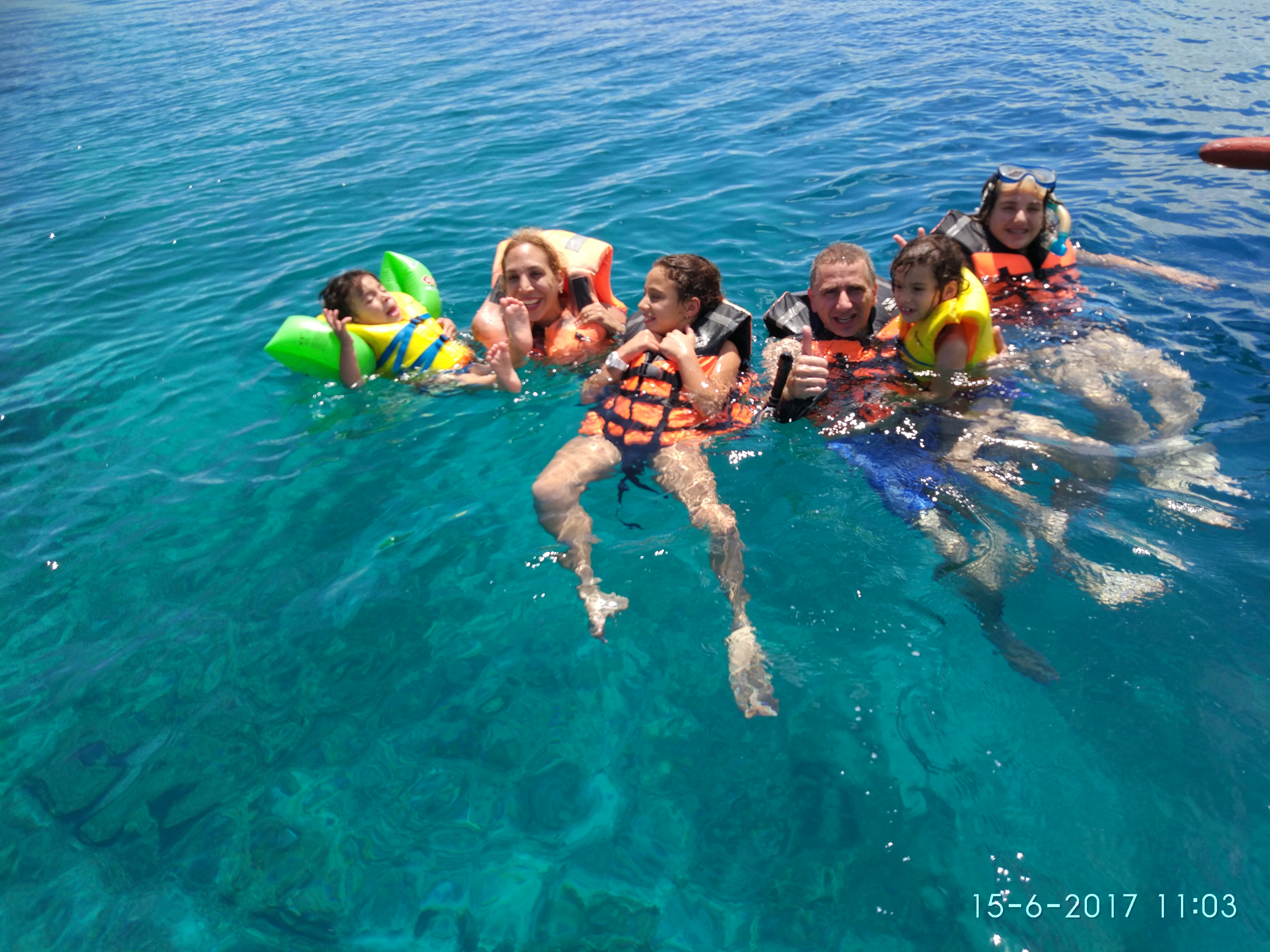 ל 1500 פזו כולל ארוחת צהריים. התחלנו בהפלגה לכיוון ריף מדהים שבו שנירקלנו וזכינו לראות דגים ואלמוגים מסוגים וצבעים שונים. היה לי קשה לנשום עם השנורקל וניכנס לי הרבה מים לאף אבל לאחר נסיונות רבים הצלחתי והבנתי איך להשתמש במסכה ובשנורקל.