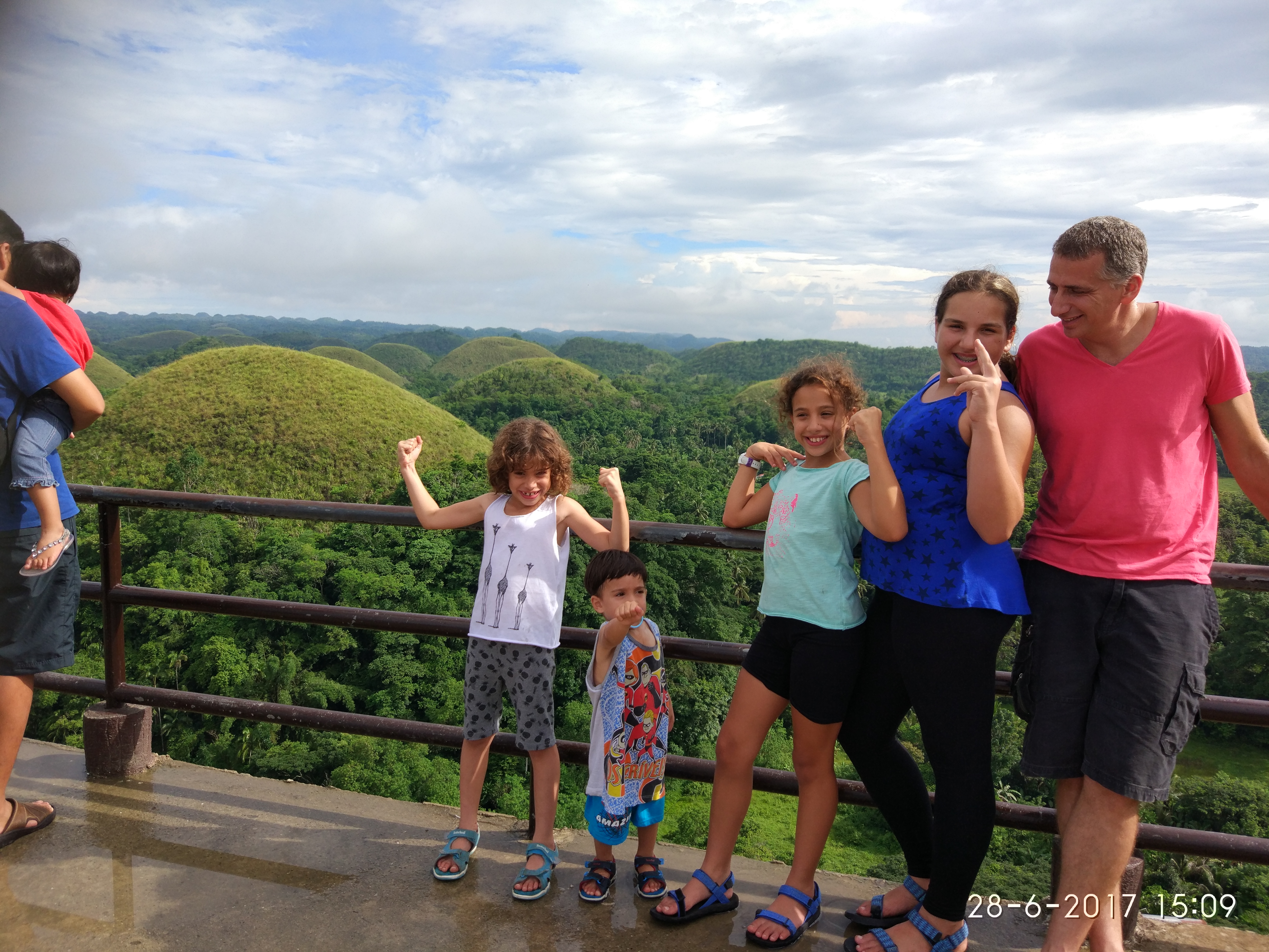 התחנה הרביעית היו הרי השוקולד. בשביל האטרקציה קניתי לילדים עוגיות שוקולד מתאימות לשם המקום. אכלנו שם ארוחת צהרים והנוף היה ממש מיוחד. גבעות עגולות שנראות ממש כמו בונבוניירות של פעם…